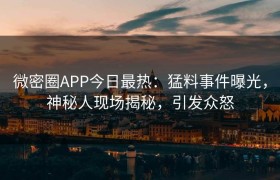 在今天的社交平台上,微密圈APP无疑成为了最火热的应用之一。今天,微密圈APP爆出了一个令人震惊的猛...
