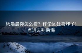 “杨晨晨你怎么看?评论区狂喜炸了!点进去别后悔!”这句话,瞬间在社交媒体上引发了热烈的讨论。无论是微...