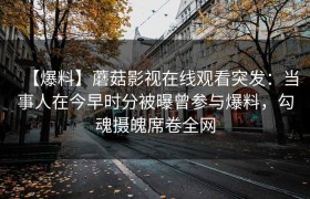 【爆料】蘑菇影视在线观看突发:当事人在今早时分被曝曾参与爆料,勾魂摄魄席卷全网