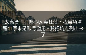 太离谱了,糖心tv 美杜莎 · 我当场清醒:原来是账号盗用 - 我把坑点列出来了 前几天看到一条让我...