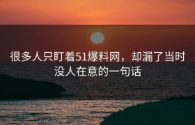 很多人只盯着51爆料网,却漏了当时没人在意的一句话
