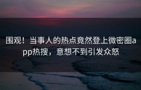 近日,微密圈app的热搜榜上出现了一个令人惊讶的话题,瞬间吸引了大批网友的围观。不同于传统的娱乐八卦...