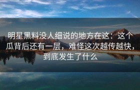 明星黑料没人细说的地方在这:这个瓜背后还有一层,难怪这次越传越快,到底发生了什么